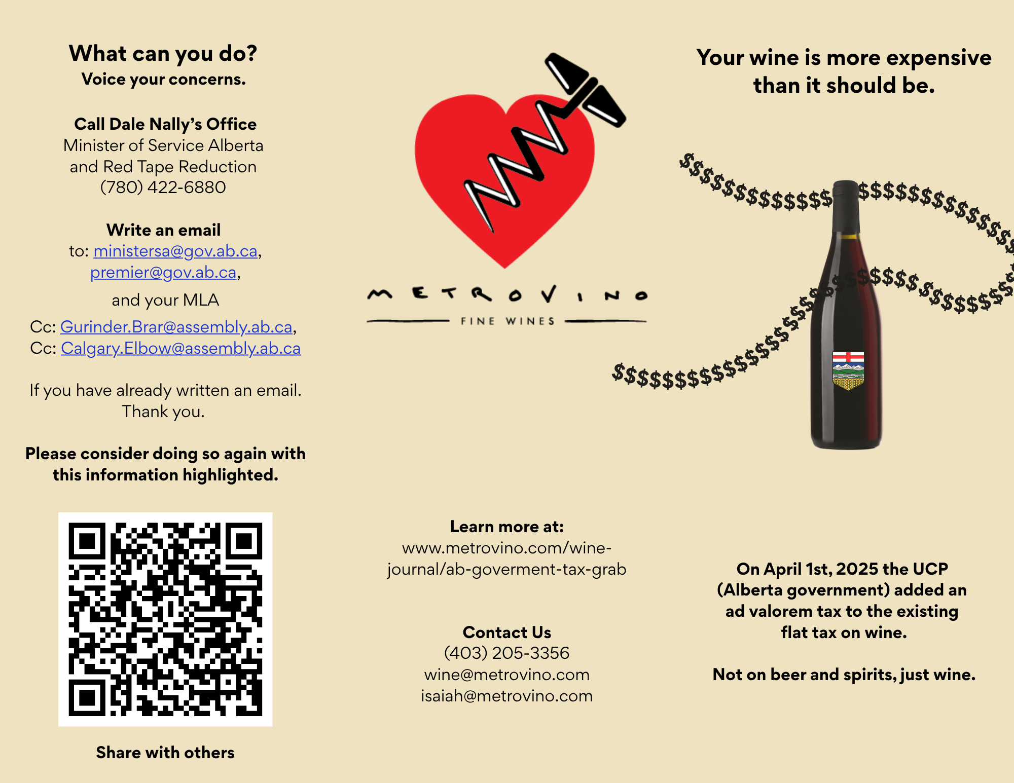 On April 1st, 2025 the UCP (Alberta government) added an ad valorem tax to the existing flat tax on wine. You can read more about this tax here, but in essence 94.3% of wine in the province has gone up in price, and 64.7% has been affected by the highest tax tier of 15%. Combined with our weak Canadian dollar and record high shipping costs, this additional tax is having disastrous effects on Alberta’s wine & hospitality industry.